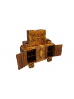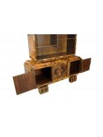 Dominującą część kompletu stanowi czterodrzwiowy bufet zwieńczony niezwykle finezyjną nadstawką.
